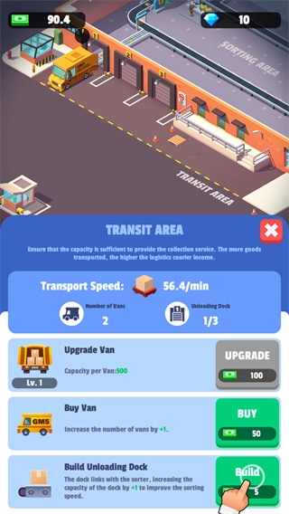 1、你可以提升各種技能,并購買更先進的分揀設備,讓物流運作更高效。