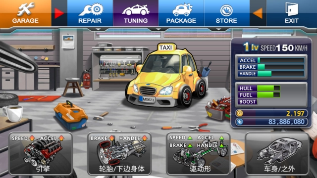 2、豐富多樣的出租車都可以解鎖使用,還能夠通過改裝部件來提高性能,幫助你更好的完成任務。