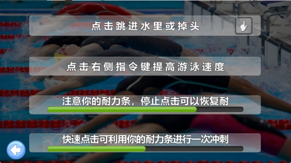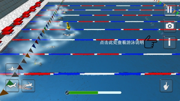 3、玩家要時刻注意游泳的節奏,讓角色能不斷提升速度,多種游泳姿勢都能自由切換。