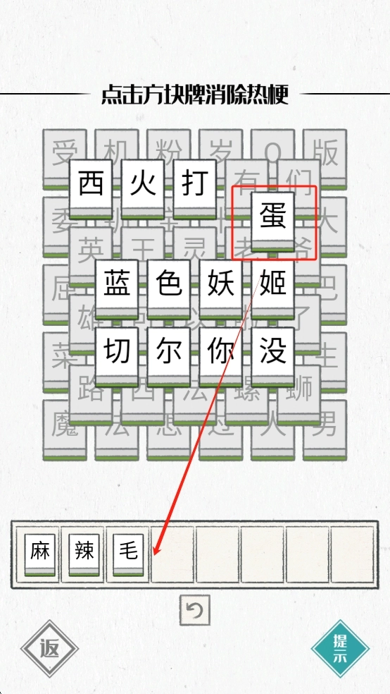 3、點擊方塊牌消除熱梗。