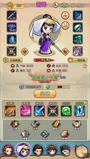 (4)輕功:主要提升弟子的速度以及閃避屬性,高階的武學提升屬性越高,部分武學有特殊屬性以及修煉條件;