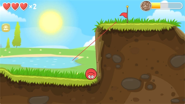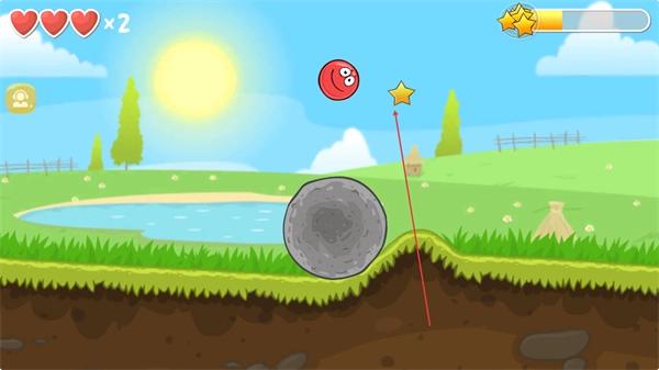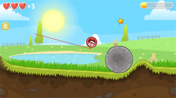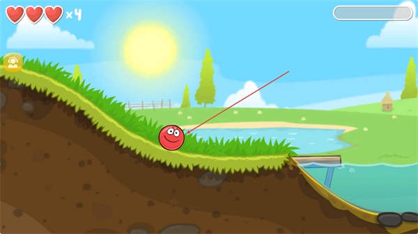 1、操控紅色豆豆沿草地邊緣滾動,避開水域,向關卡前方推進,注意保持平衡。