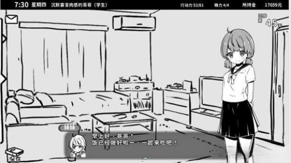 1、時間段分早中晚,不同的時間和房間去找妹妹會觸發不同的對話或互動,在白天找妹妹即可出門游玩。