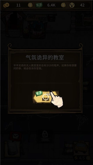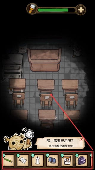 2、在教室場景中,可使用底部道具欄的放大鏡功能,查找隱藏線索來推進探索進程。