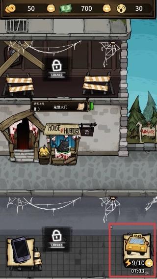 1、進入鬼屋大門場景后,點擊【TAXI】進度以推進游戲。