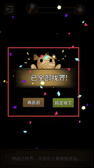 4、當所有目標物品都找齊后,你可以選擇結束關卡搞定收工,也可以再逛逛探索更多內容。