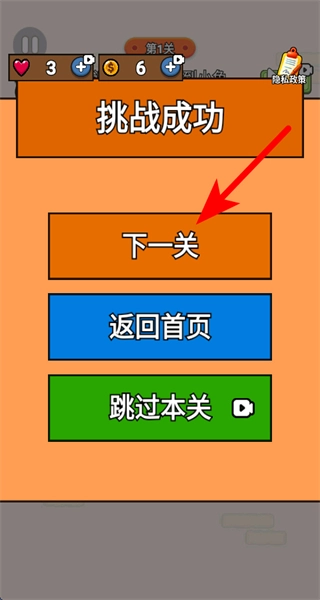 4、游戲關卡通關后,點擊下一關的按鈕,進入下一個畫線尋路的關卡。