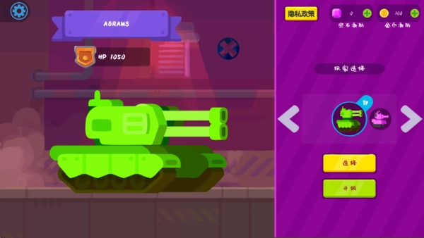 這是一款采用2D卡通風格的坦克射擊競技游戲,其畫面簡潔明快,角色設計也頗具趣味性。