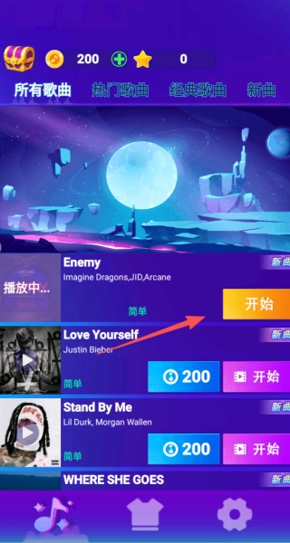 1、你可以從曲庫中挑選各類不同的歌曲,每首歌都對應(yīng)著不一樣的音符密度和下落速度,所以挑戰(zhàn)難度也各有差異。
