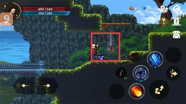 2、擊敗敵人后,拾取場景中的【靴子】道具,此時自身血量變?yōu)椤?80/540】,繼續(xù)推進關(guān)卡。