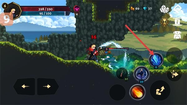 4、戰(zhàn)斗中自身血量降至【398/590】,點擊【冰系】技能按鈕(消耗【15】點資源),發(fā)起范圍攻擊壓制敵人。