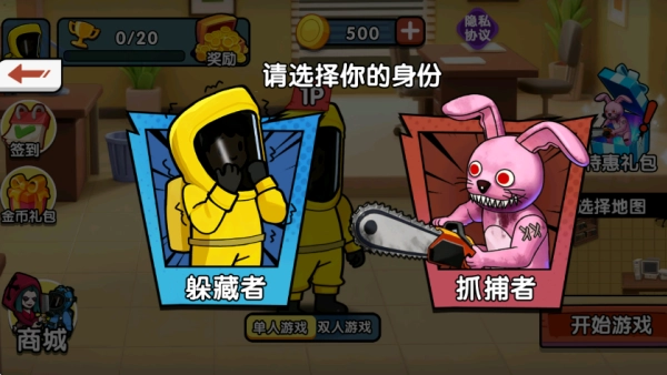 4.小編選擇了后室地圖,隨后需要選擇扮演躲藏者還是抓捕者。