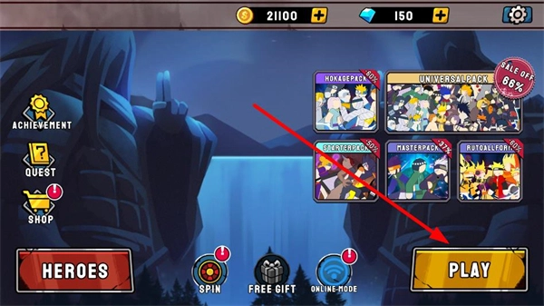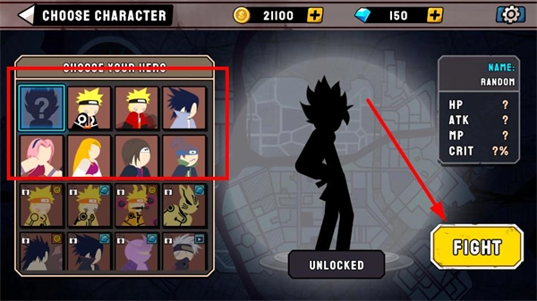 2、進入角色選擇界面后,選擇已解鎖的英雄角色,點擊FIGHT按鈕即可進入戰斗場景。
