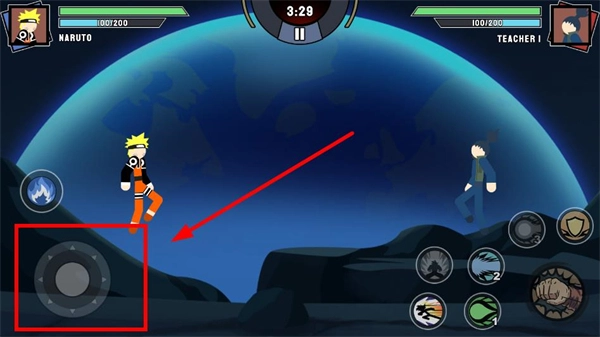 3、在戰斗界面的左側區域,可借助搖桿樣式的控件來操控角色進行移動,以此調整與敵方之間的戰斗位置。