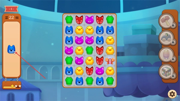 3、當關卡中出現特殊方塊后,按照提示點擊該方塊兩次,即可使用其對應的效果消除一排玩偶,助力你更高效地完成當前消除關卡的目標。