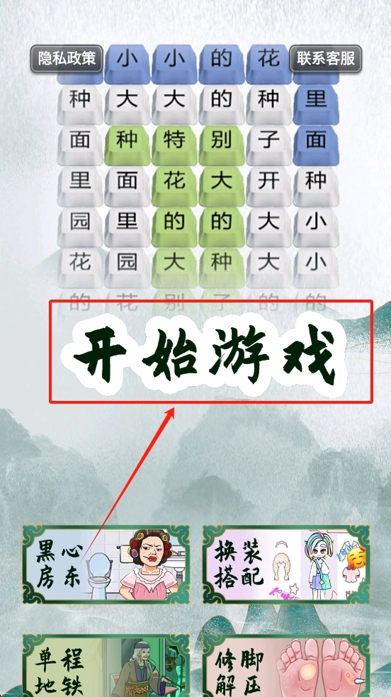 2、在游戲啟動界面,同意隱私政策后,點擊“開始游戲”按鈕進入游戲界面。