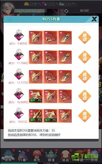 罪惡之塔玩法中,可以獲得海量紅裝。多余的紅裝可以進行升鉆,升鉆后可以激活神圣套裝,獲得大量戰力。罪惡之塔有若干層,層數越高,爆出的裝備品質越好且概率越高。每一層都有5個BOSS可供挑戰,品質越好的BOSS難度越高,隨之產出越好。其中武器和衣服是游戲中稀有部位,武器只有挑戰五彩BOSS才能獲得,衣服只有挑戰五彩和紅色BOSS才能獲得。