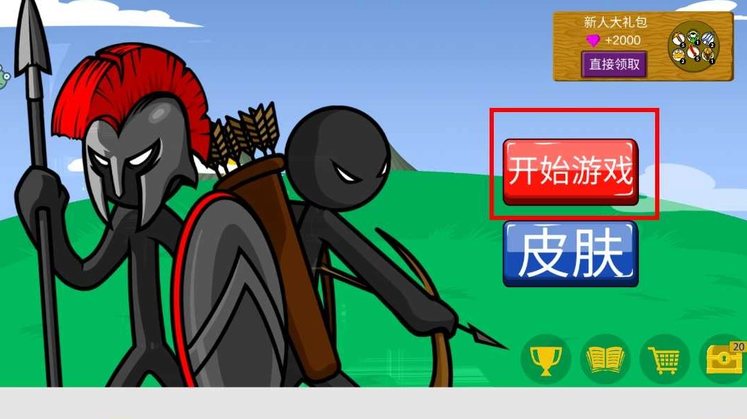 1、進入游戲界面后,能看到手持長矛與弓箭的火柴人形象,點擊“開始游戲”按鈕,就能開啟火柴人戰斗冒險之旅,進入精彩紛呈的對戰世界。