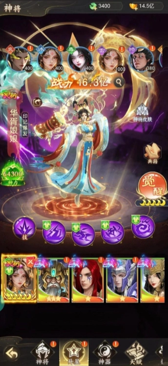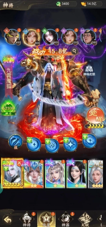 2、離線 / 在線掛機自動積累修為,設(shè)置陣容與技能順序提高效率,通過神將水晶突破、經(jīng)驗道具升級,提升角色戰(zhàn)力。