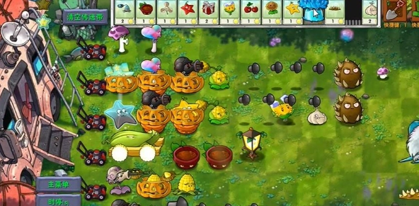 1、和原版一致,拖拽植物種植到格子,收集陽光解鎖新植物,抵御僵尸進攻。