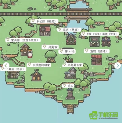 1、地圖解鎖需按以下順序進行:首先解鎖村公所、月兔家、蘿卜地、碼頭,接著再依照順序解鎖長頸鹿家、烏龜家、花店、工具店、茶館面攤、酒吧。