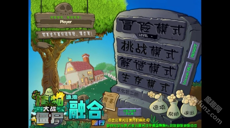 1. 進(jìn)入植物大戰(zhàn)僵尸融合Expand版游戲后點擊開啟冒險模式;