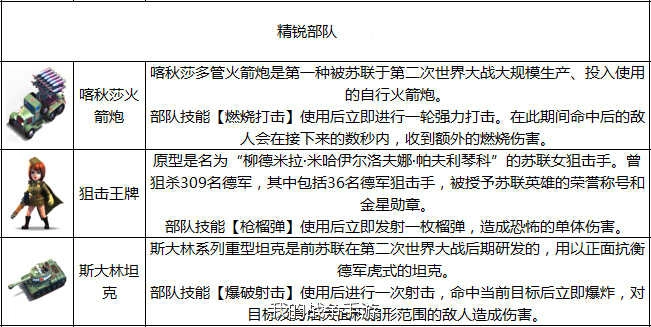 斯大林坦克:蘇軍為抗衡虎式坦克研發的重型戰車,正面裝甲厚重,火力兇猛。