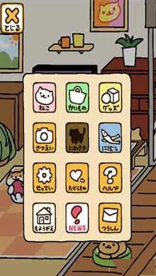 菜單中包含貓咪、購物、物品、拍照、小魚干、設(shè)置等模塊,點(diǎn)擊【購物】即可瀏覽可購道具。