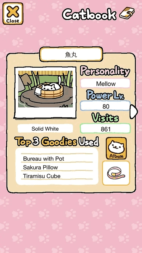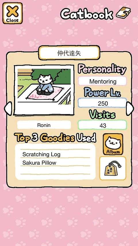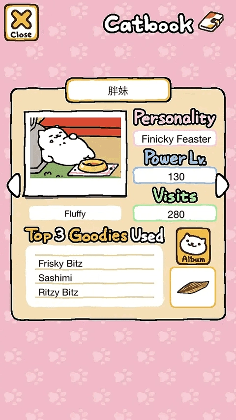 條目板塊記錄你與貓咪之間的點(diǎn)滴聯(lián)結(jié)。在這里,你能翻閱已到訪貓咪的檔案,查看它們的名字、性格描述、活力值與來訪頻次。名字可自由修改,據(jù)說改名后貓咪現(xiàn)身頻率會悄然提升;性格描述常藏著有趣線索,比如“愛蹲窗臺”“總盯著蝴蝶”之類,讓命名更有溫度。