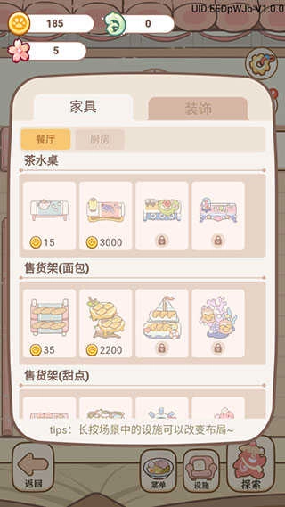 4、在“設(shè)施”內(nèi),對(duì)于餐廳和廚房分別都有不同的家具和裝飾可以解鎖,努力掙得更多的金幣,裝扮自己的旅店,客人的評(píng)分會(huì)更高。