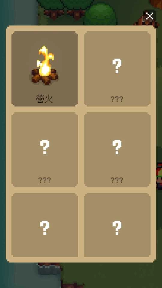3、另外游戲中我們還需要建造自己所需要的建筑,在初始島的左側會有一個木桶,打破即可得到營火配方,左下角用來查看當前可建造的建筑。