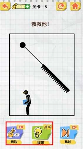 5、當你面對較難的關卡時,還可及時掌握有關的線索,便可選擇最佳的繪畫區域,及時拯救火柴人。