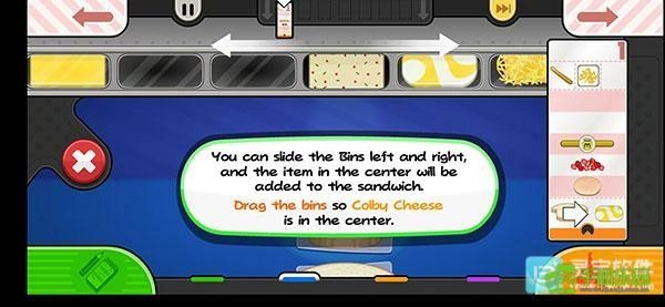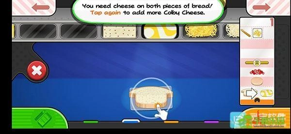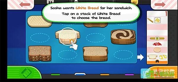 4、在挑選完所需要的食物之后,點(diǎn)擊面包片食物就會自動放在面包上,最后只要點(diǎn)擊右下方即可制作三明治。