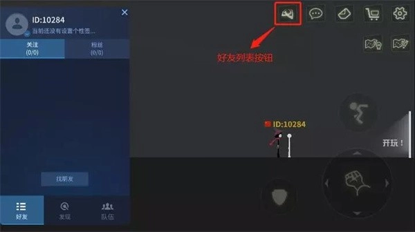 1、點擊好友列表按鈕,即可顯示你關注的好友以及關注你的粉絲,組隊列表也在這里哦!