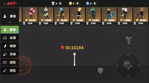 5、商城內包含多達幾十套的火柴人套裝,還有火柴人身體各部位的裝飾及特效,可以隨心所欲DIY搭配。