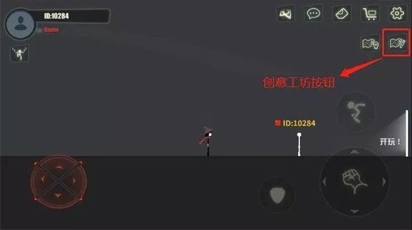 8、創意工坊按鈕,火柴君們可以點開介個按鈕,創建專屬自己的場景地圖,主題風格、場景道具,武器道具、角色初始位置,都支持火柴君們自己建設,縱是天馬行空的想法,這里都能實現!建設完成以后,點擊右上角保存即可~