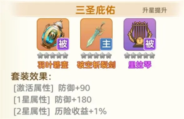 【三圣庇佑】是由三件秘寶構成的套裝,集齊套裝內的三件秘寶,即可激活對應的套裝效果。