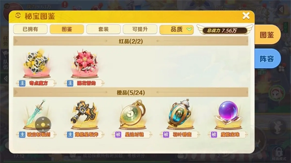 打開【秘寶】后,冒險者們可以看到自己擁有的秘寶。