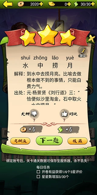 3、上千個(gè)趣味十足的游戲關(guān)卡等你挑戰(zhàn),讓你沉浸在無(wú)盡的成語(yǔ)樂(lè)趣中。