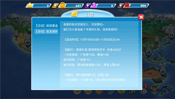 答案三:點(diǎn)擊未解鎖機(jī)場(chǎng),空姐下方會(huì)顯示機(jī)場(chǎng)解鎖條件,一般為特定星級(jí)+金幣。