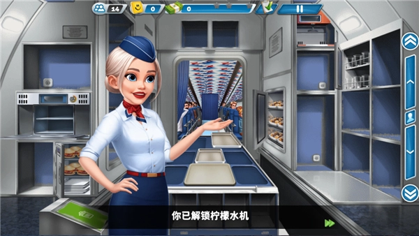 4、獨(dú)特的游戲背景:游戲以航空餐經(jīng)營為主題,玩家需要在飛機(jī)上扮演空姐或廚師的角色,及時(shí)給顧客配餐。這種獨(dú)特的游戲背景讓玩家在享受烹飪樂趣的同時(shí),還能體驗(yàn)到空姐或廚師的日常工作和生活。