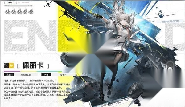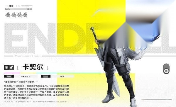 終末地工業的監督員和發言人,負責監督各地是否存在安全隱患并上報,需要經常走訪各地。近戰定位,用佩劍發動范圍攻擊,被動技能能疊加傷害,前期清圖特別強力。