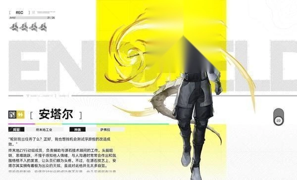 管理員的直屬干員,加入終末地工業前獨自游歷過很多地方,獨立作戰能力超強。性格比較內斂,容易被誤會不好溝通,但實戰中能獨當一面。