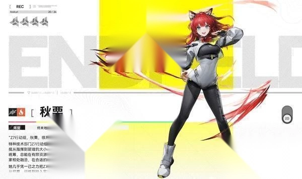 終末地組織的特勤成員,從小跟著母親學武藝,戰斗素養過硬,性格開朗陽光。作為副C角色,用近戰刀作戰,不用長時間留在戰場,就能對周圍敵人造成致命傷害,適配多種陣容。