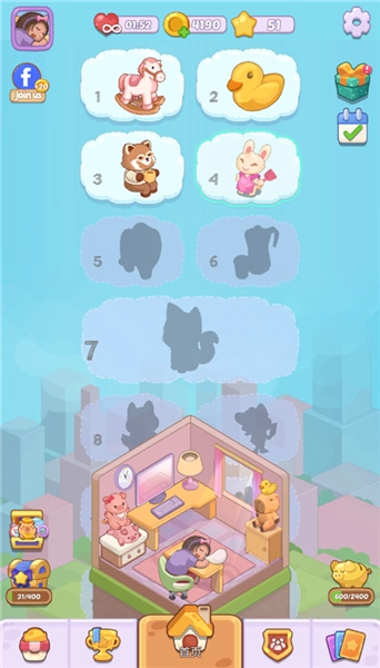 1、擁有豐富多樣的小物件解鎖體系,游玩過程中可不斷解鎖家具、裝飾等各類好物,隨心搭配擺放,親手打造獨屬于自己的溫馨小家,沉浸式體驗布置家園的樂趣與成就感。