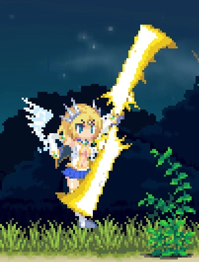 下蹲攻擊天使光環,射程中等電屬性多段攻擊,對移動慢的地面目標不錯,小型怪很容易打出硬直,個人建議打2面BOSS蜂后的時候多用