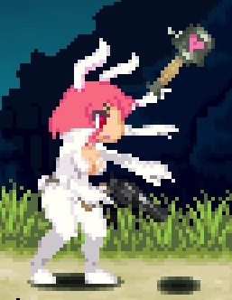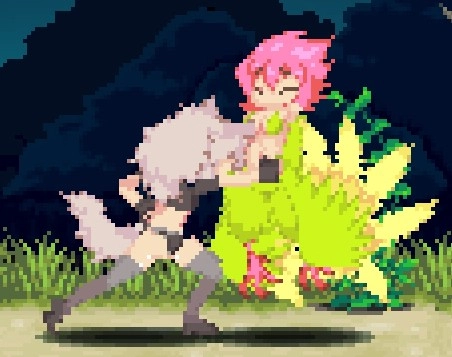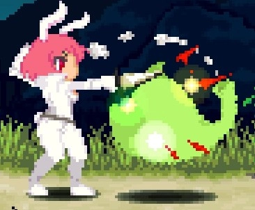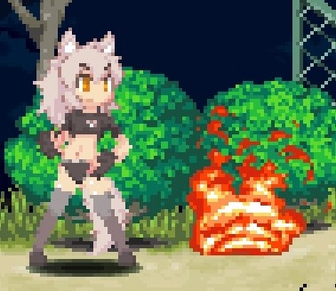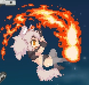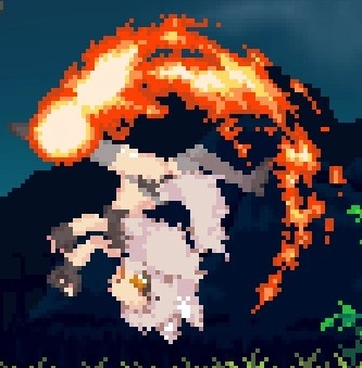 下蹲攻擊鉤腳(古烈踢),是目前僅有的對空勉強能用的招式,適用于應對羽毛哈比、隕石這類情況,能讓地面的小型怪物呈現浮空狀態;不過因為自機的對空能力實在拉胯,所以實用性不算高,后續可以銜接空中下A攻擊。
