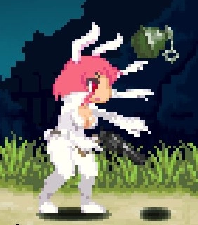 副武器lv1,普通手雷,曲線丟出去,濺射判定,可一次丟2顆