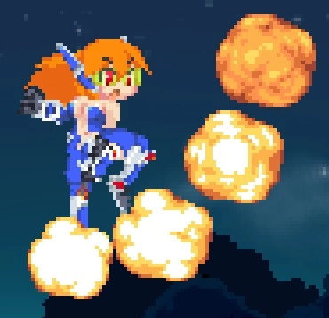 副武器火球,丟出去落地上可彈跳幾次,碰到怪可直接炸開,威力很低可燒多段,對小型怪硬直效果不錯,無法對空依舊殘念,牽制用