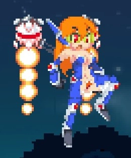 下蹲副武器導彈,同理不蓄力就一小導彈,蓄力后變大,lv2變2發,lv3變3發,有制導和范圍攻擊效果,如果沒有敵人會圍著自機飛行一段時間,可以帶著跑路
